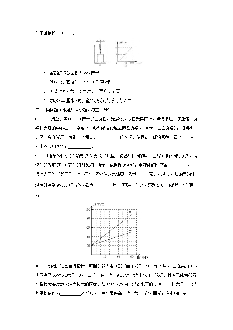 【文档名称】 2012浙江省宁波市中考物理真题及答案(Word版).doc