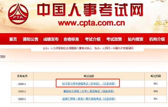 2、找到“经济专业技术资格考试(初级) (点击选择)”,并点击进入。