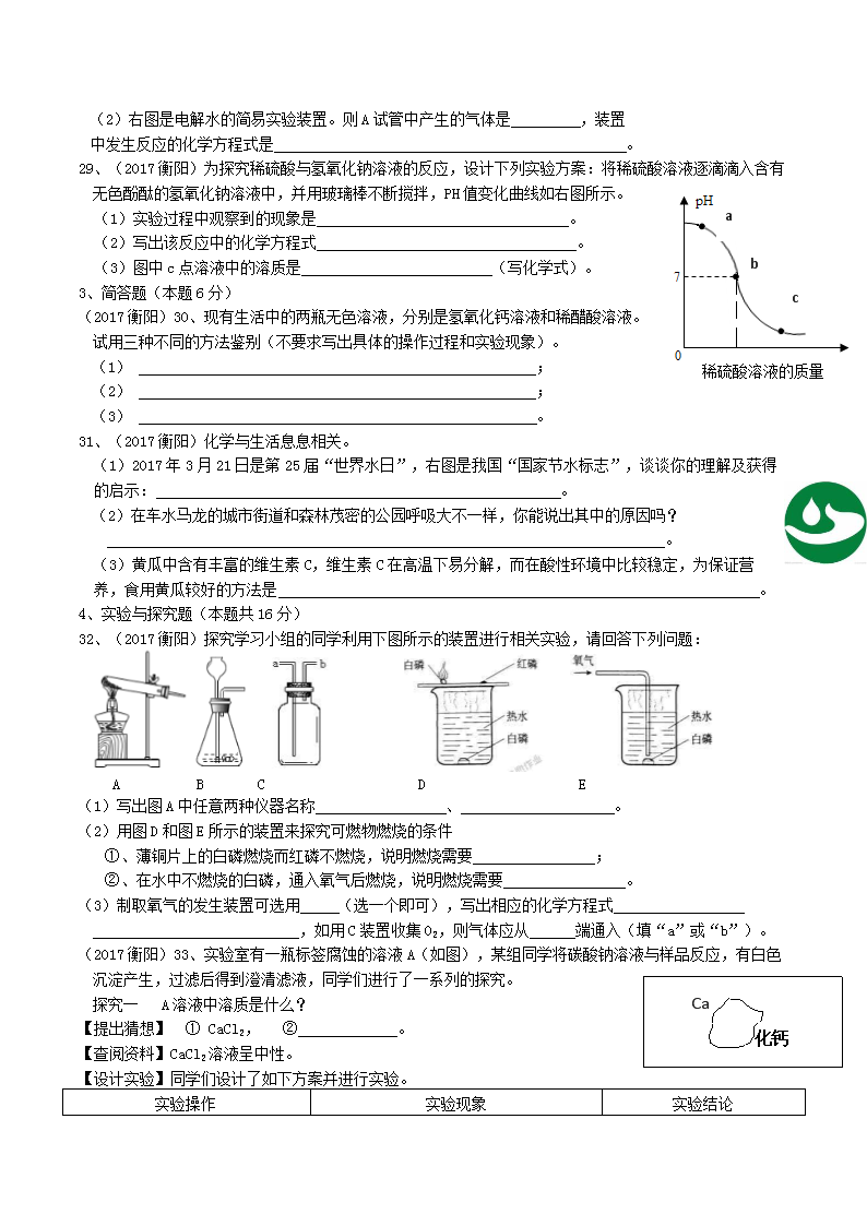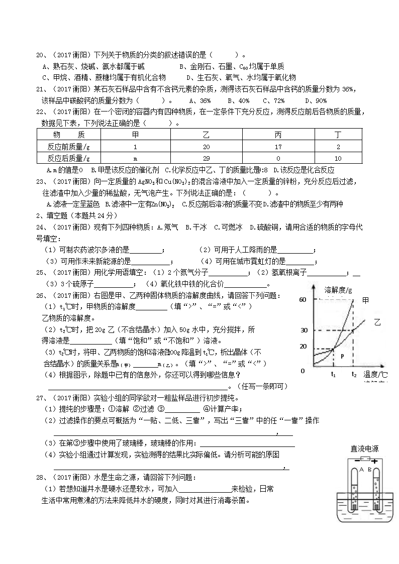 【文档名称】 2017年湖南省衡阳市中考化学真题及答案(Word版).doc