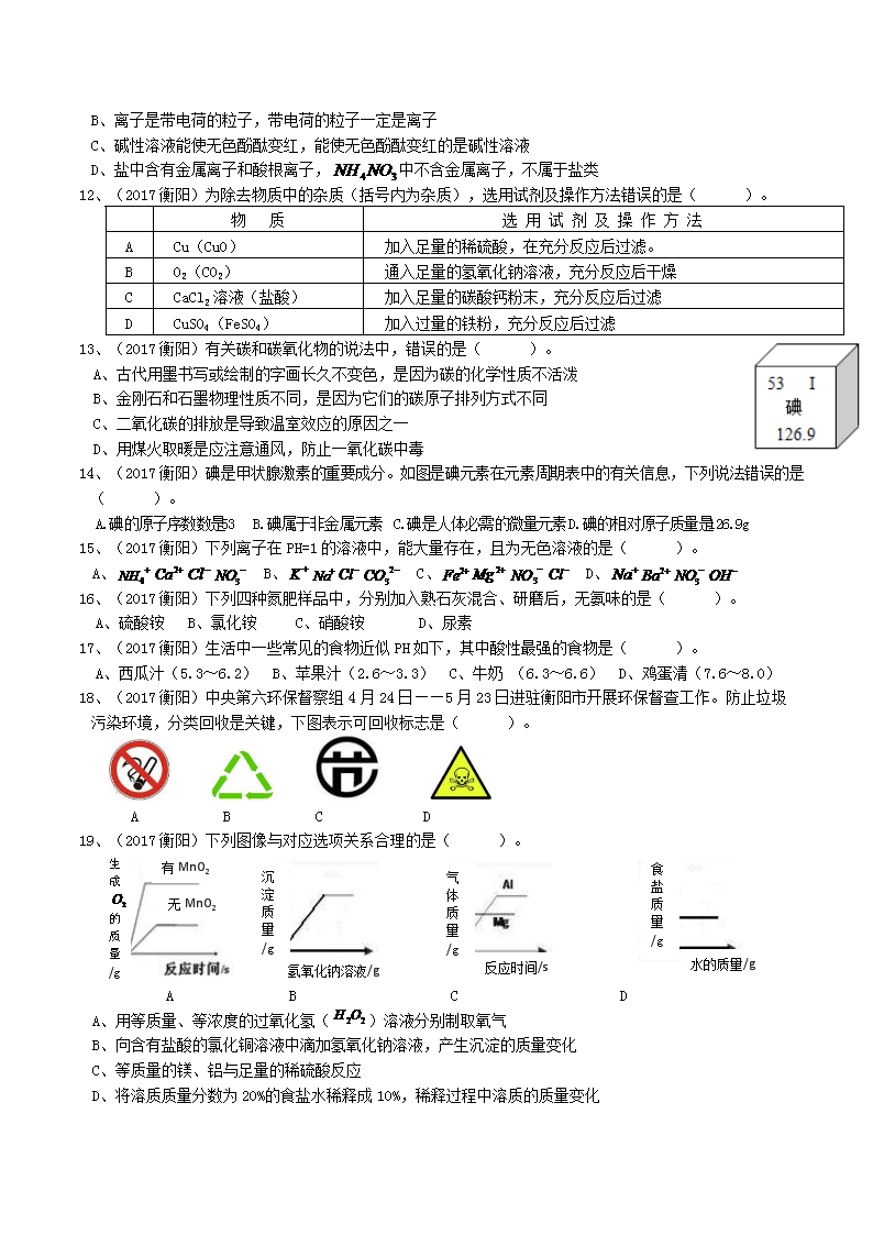 【文档预览】 无忧考网整理发布2017年湖南省衡阳市中考化学真题及答案(Word版),前五页预览如下: