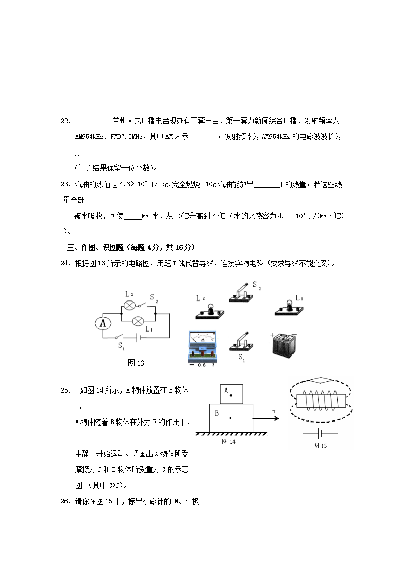 【文档名称】 2009年甘肃省兰州市中考物理试题及答案(Word版).doc