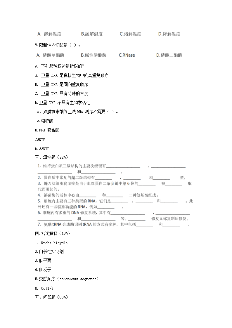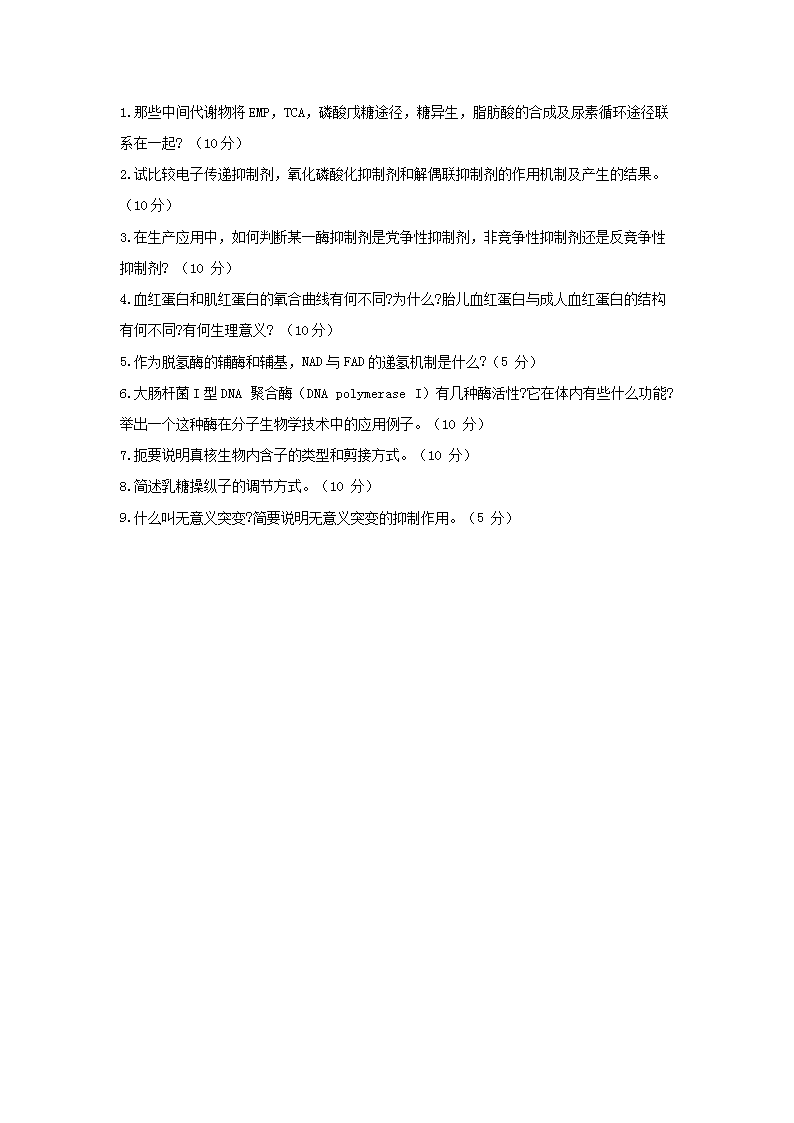 【文档名称】 2003年天津南开大学生物化学考研真题(Word版).doc