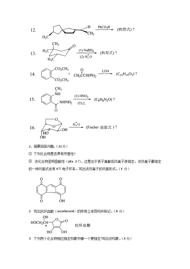 【文档名称】 2006年天津南开大学有机化学考研真题(Word版).doc