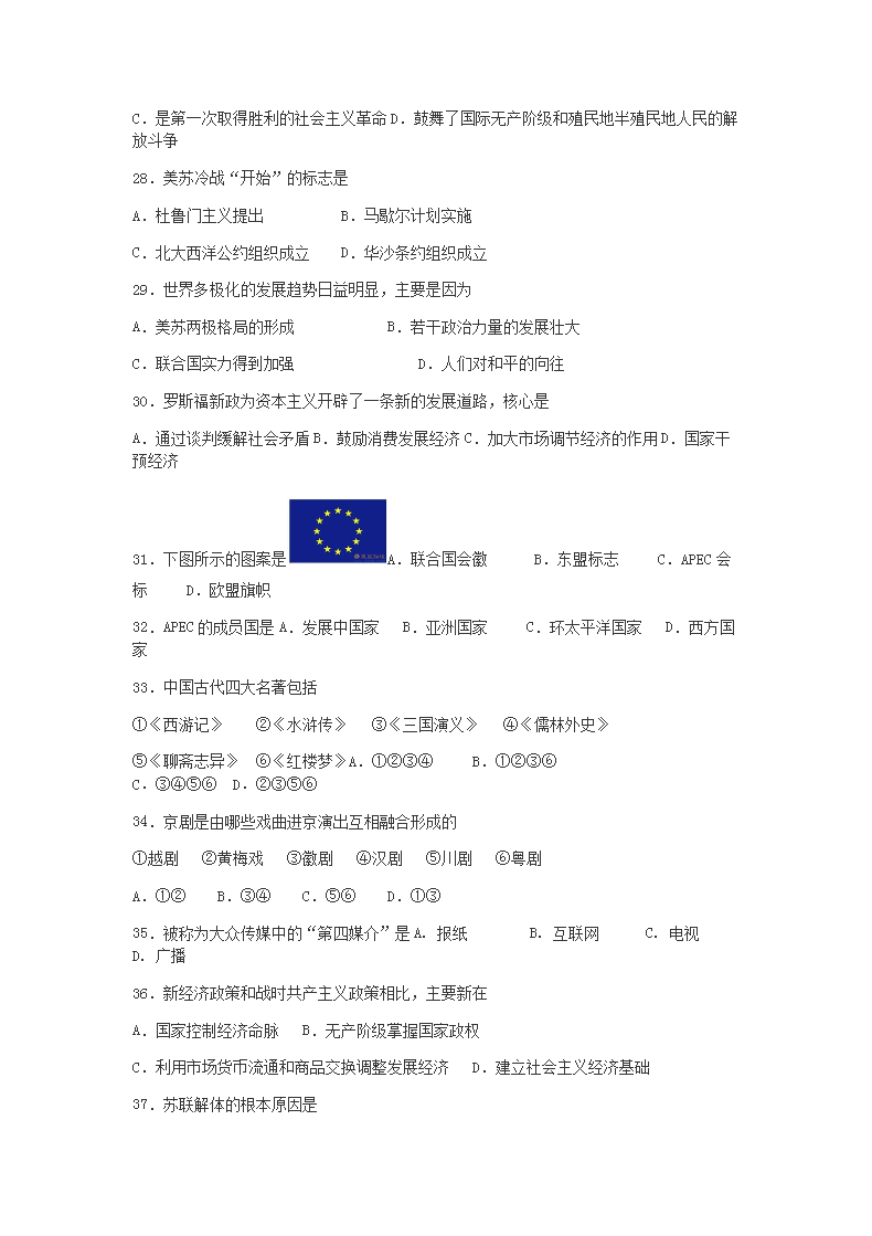 【文档预览】 无忧考网整理发布2010年广东普通高中会考历史真题及答案(Word版),前五页预览如下: