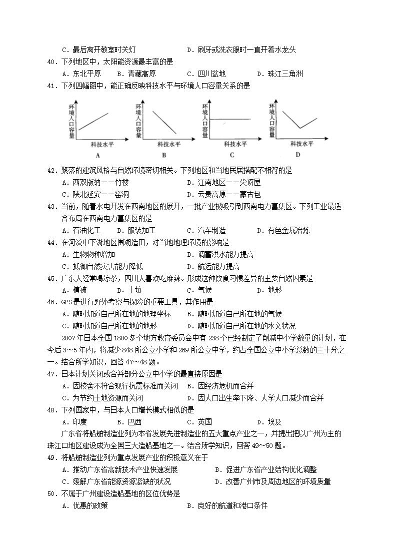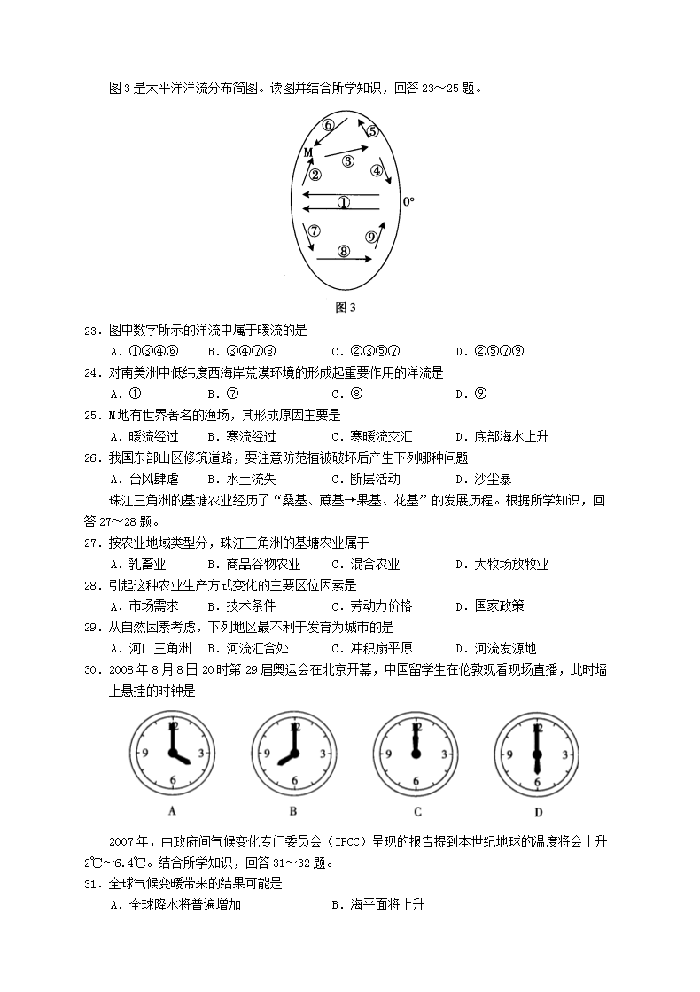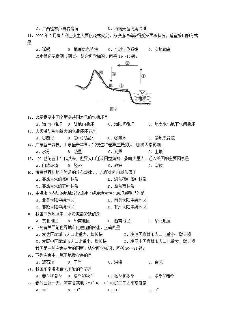 【文档名称】 2009年广东普通高中会考地理真题及答案(Word版).doc