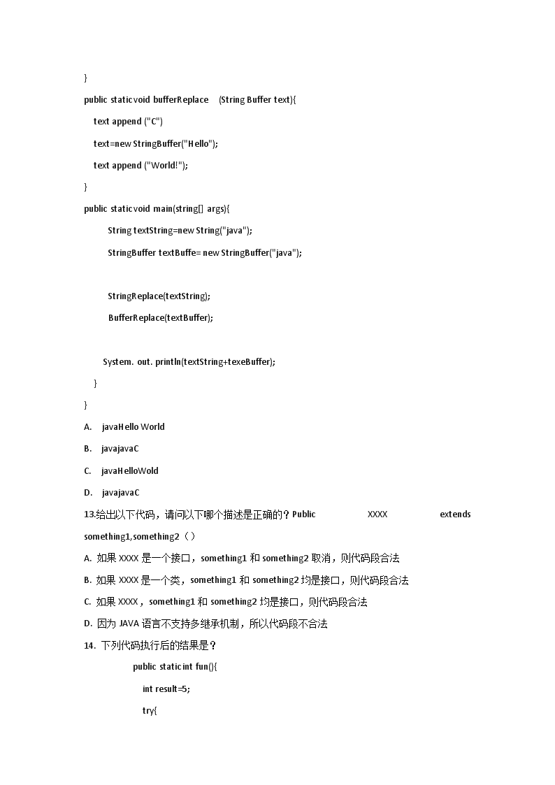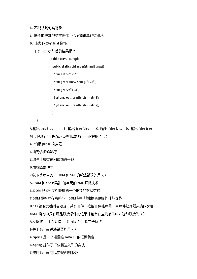 【文档预览】 无忧考网整理发布中软国际招聘Java开发岗技能测试题(Word版),前五页预览如下: