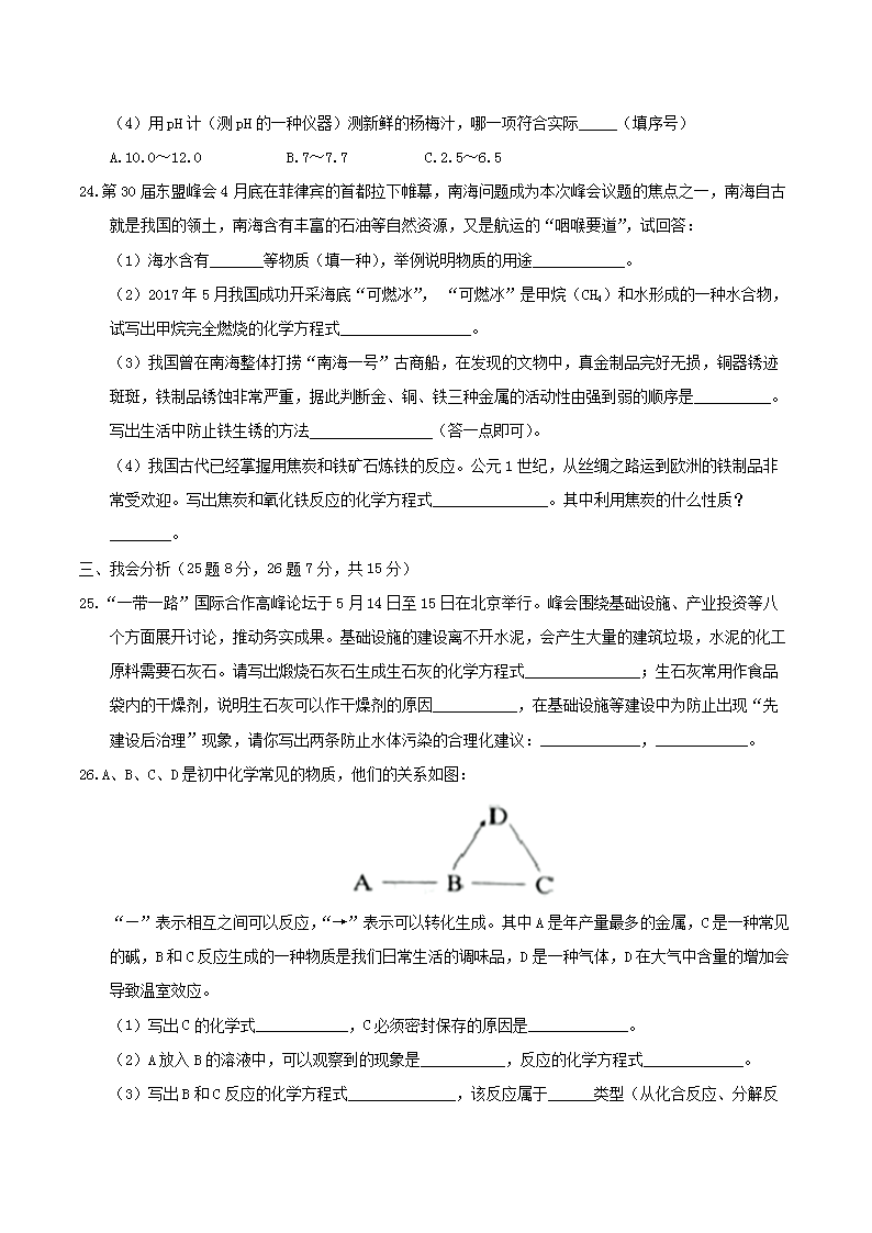 【文档名称】 2017年湖南省怀化市中考化学真题及答案(Word版).doc