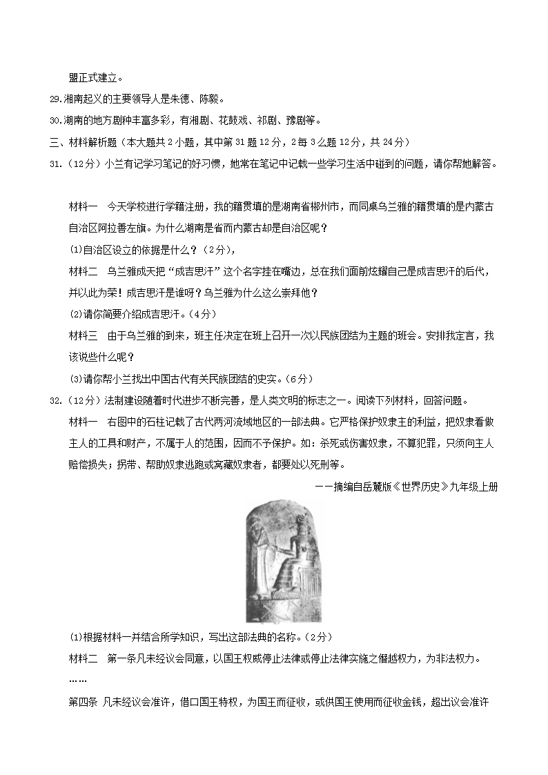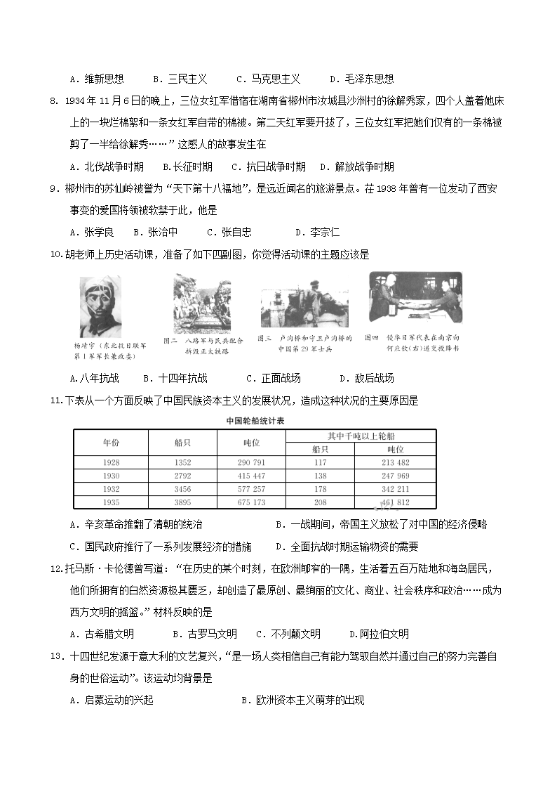 【文档名称】 2017年湖南省郴州市中考历史真题及答案(Word版).doc