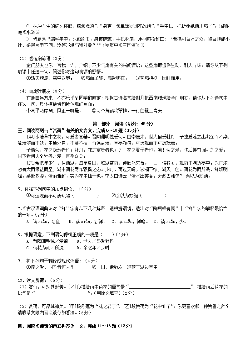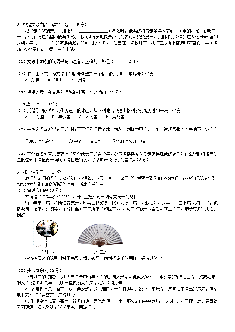 【文档名称】 2009年福建省厦门市中考语文真题及答案(Word版).doc