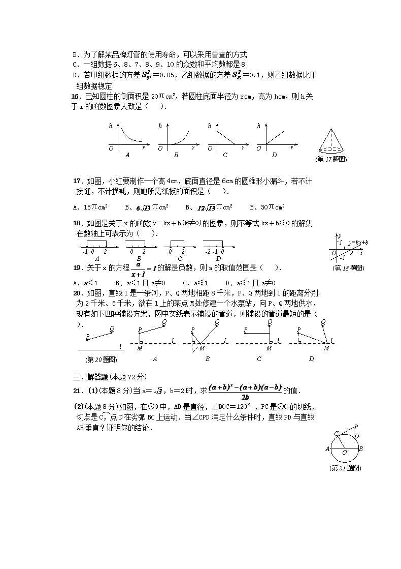 【文档预览】 无忧考网整理发布2007年山西省中考数学真题及答案(Word版),前五页预览如下: