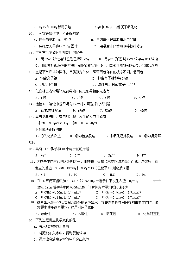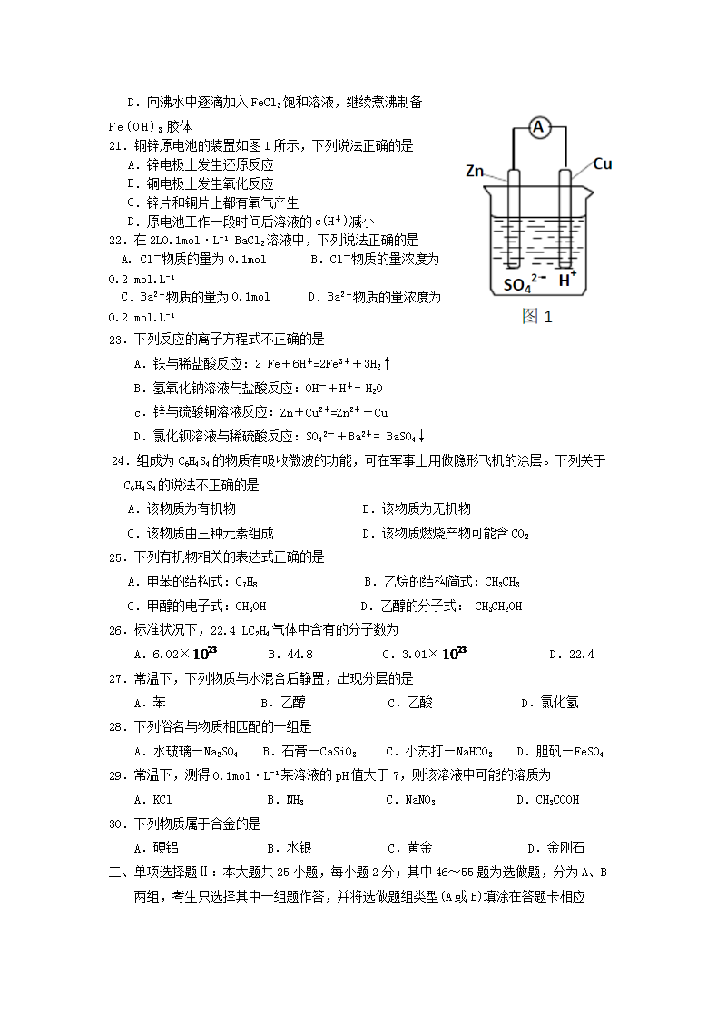 【文档名称】 2016年广东普通高中会考化学真题及答案(Word版).doc
