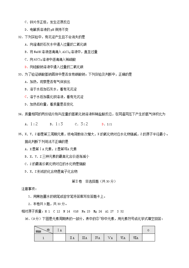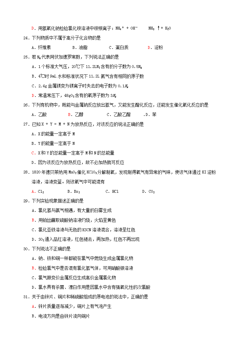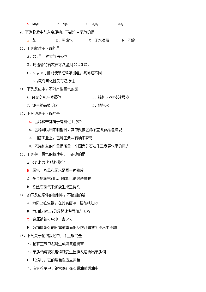 【文档名称】 2011年天津普通高中会考化学考试真题(Word版).doc