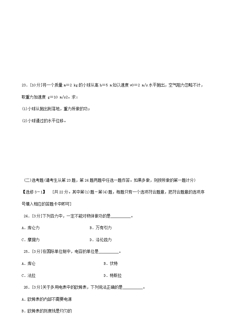 【文档名称】 2014年湖南普通高中会考物理考试真题(Word版).doc