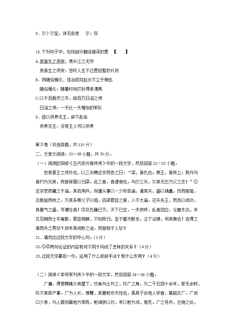 【文档预览】 无忧考网整理发布2018年广东成人高考专升本大学语文真题及答案(Word版),前五页预览如下: