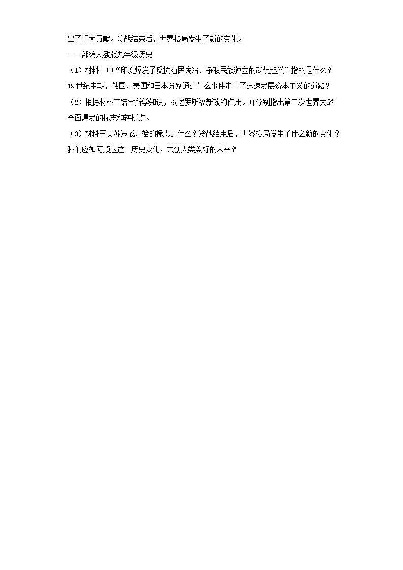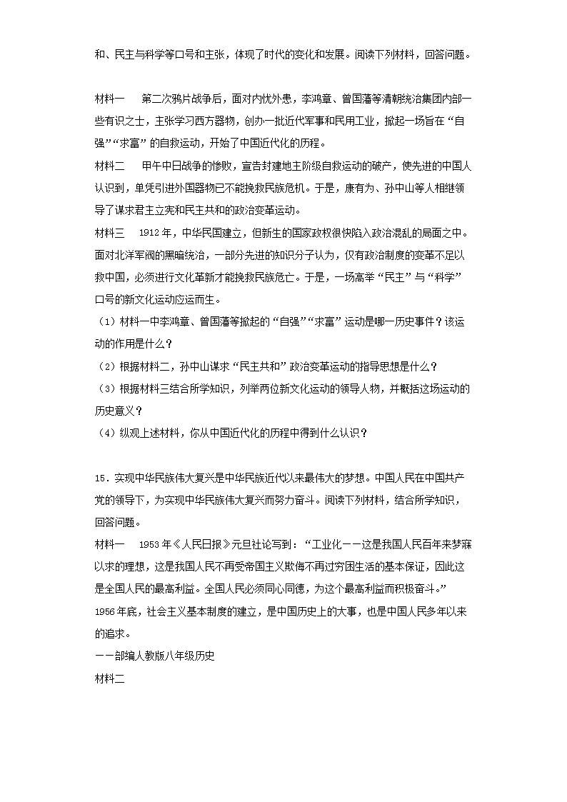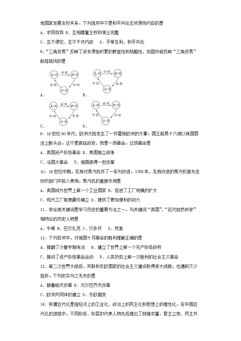 【文档名称】 2020年贵州省铜仁市中考历史真题及答案(Word版).doc