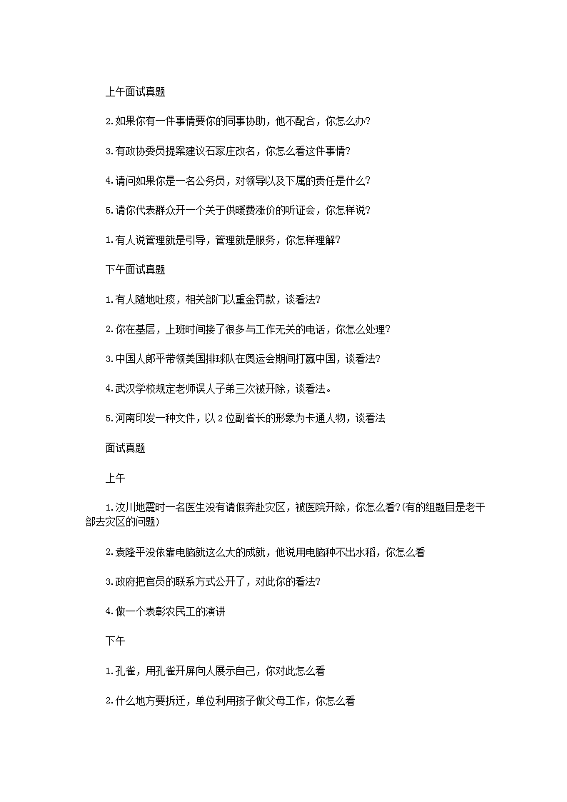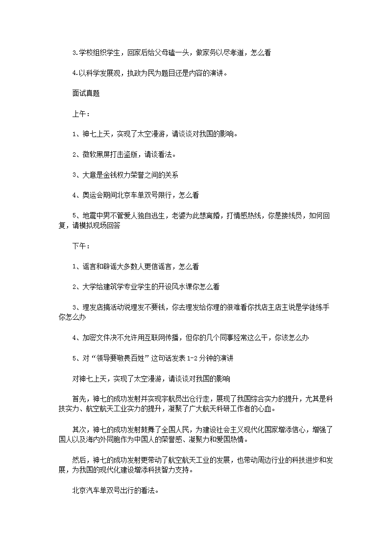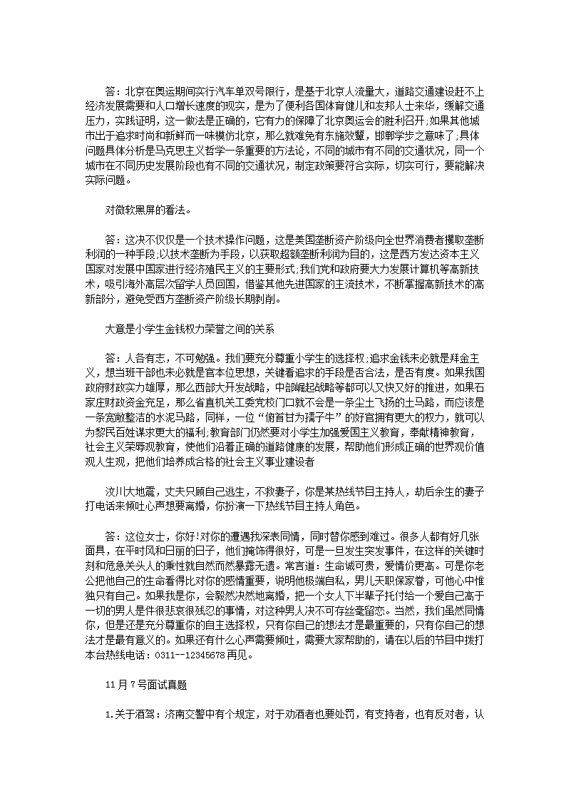 【文档名称】 2008年河北省事业单位招聘面试真题及答案(Word版).doc
