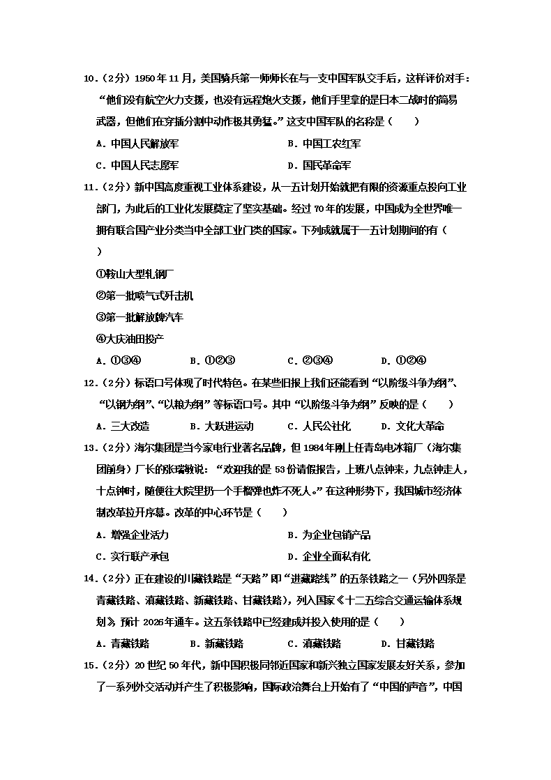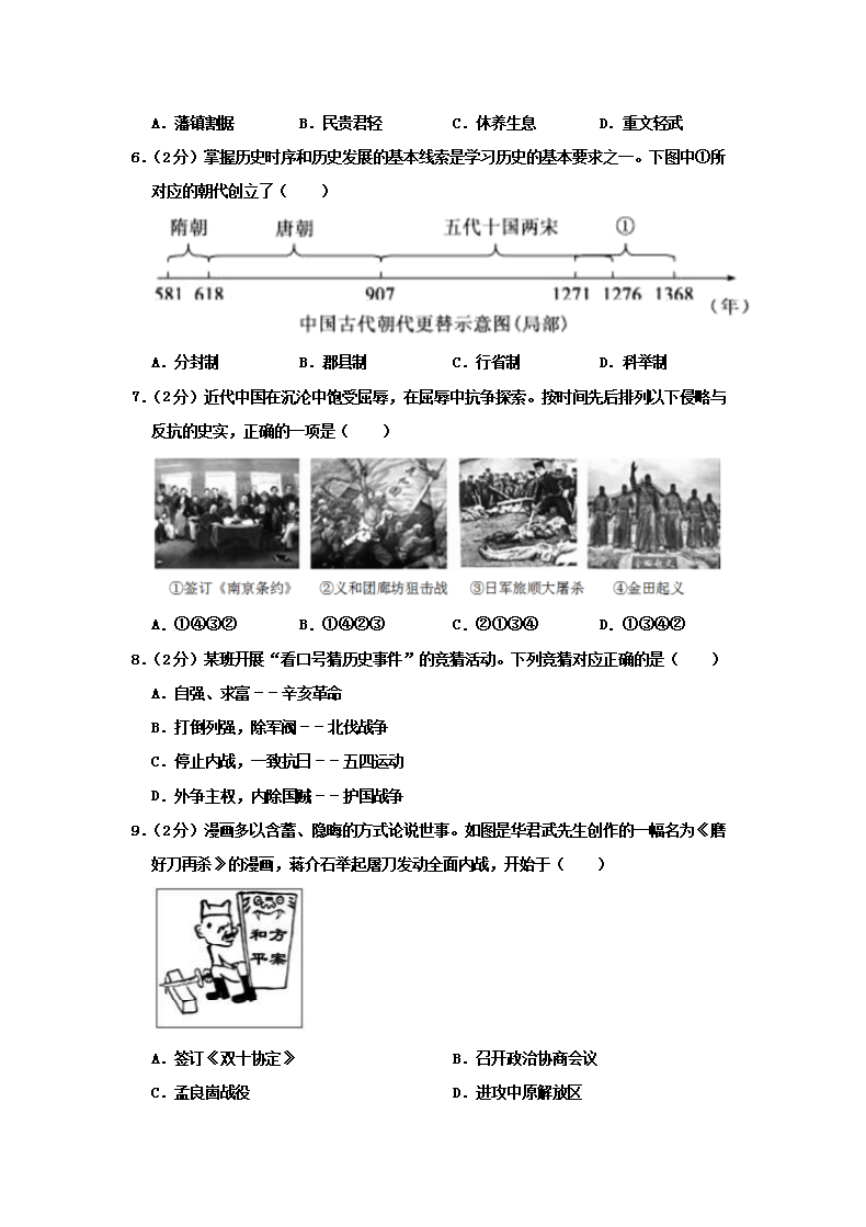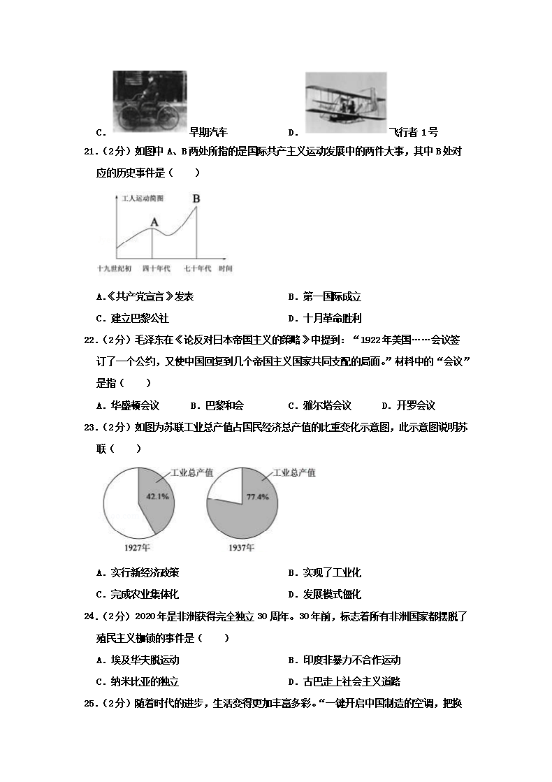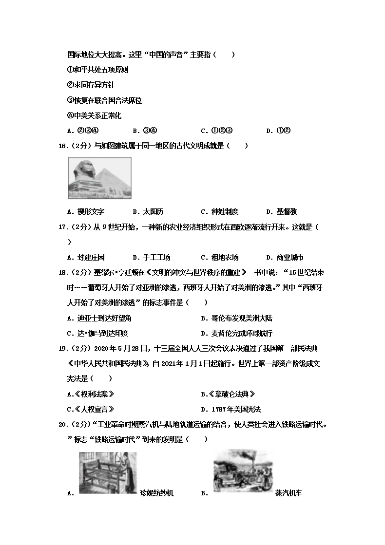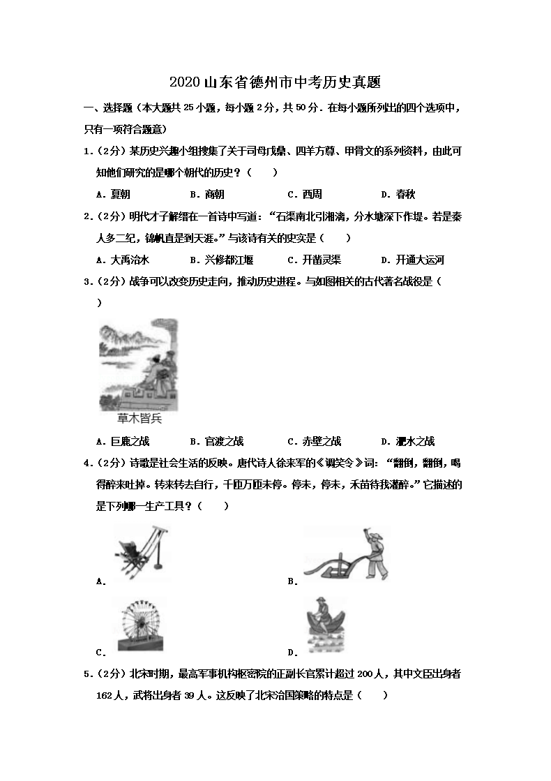 【文档名称】 2020山东省德州市中考历史真题(Word版).doc