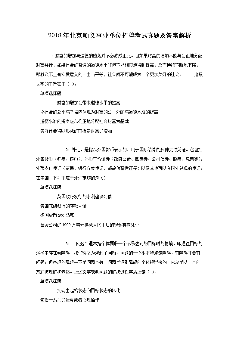 【文档名称】 2018年北京顺义事业单位招聘考试真题及答案解析(Word版).doc