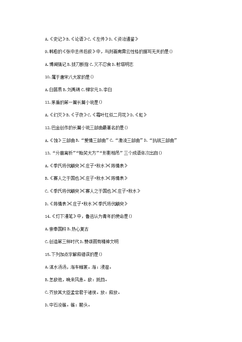 【文档名称】 2017年浙江成人高考专升本大学语文真题及答案(Word版).doc
