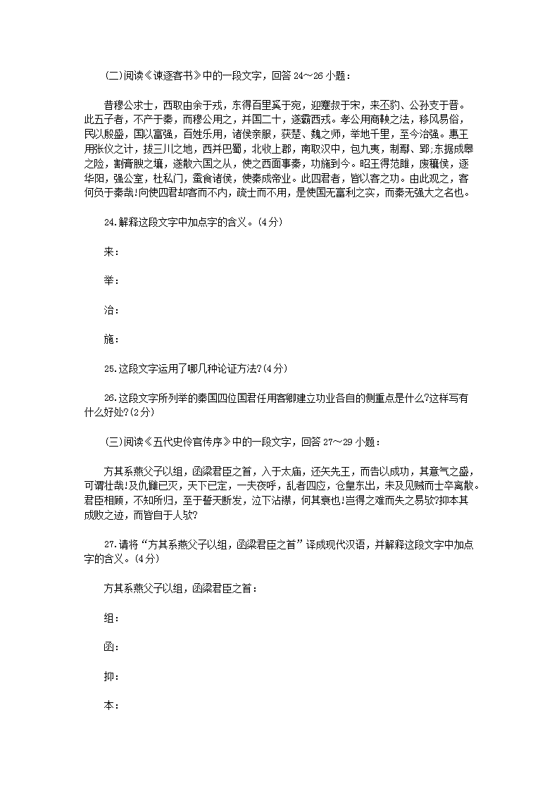 【文档预览】 无忧考网整理发布2017年浙江成人高考专升本大学语文真题及答案(Word版),前五页预览如下:
