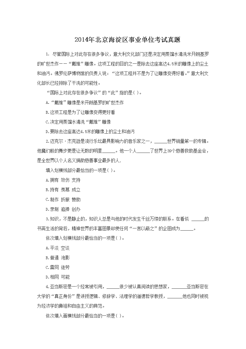 【文档名称】 2014年北京海淀区事业单位考试真题(Word版).doc