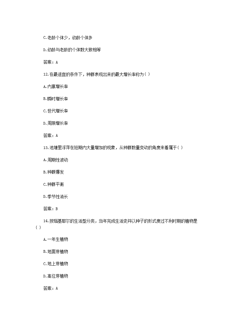 【文档名称】 2017年新疆成人高考专升本生态学基础真题及答案(Word版).doc