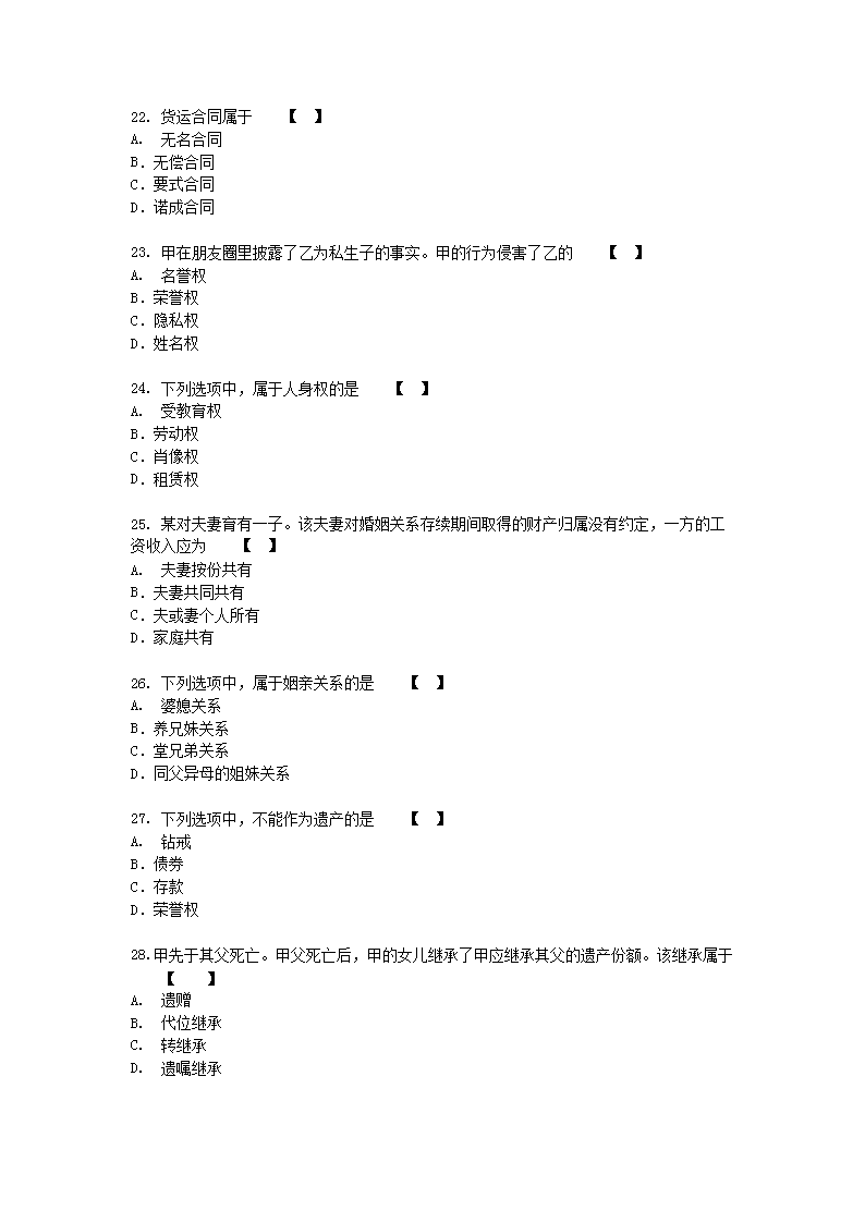 【文档名称】 2017年新疆成人高考专升本民法真题及答案(Word版).doc