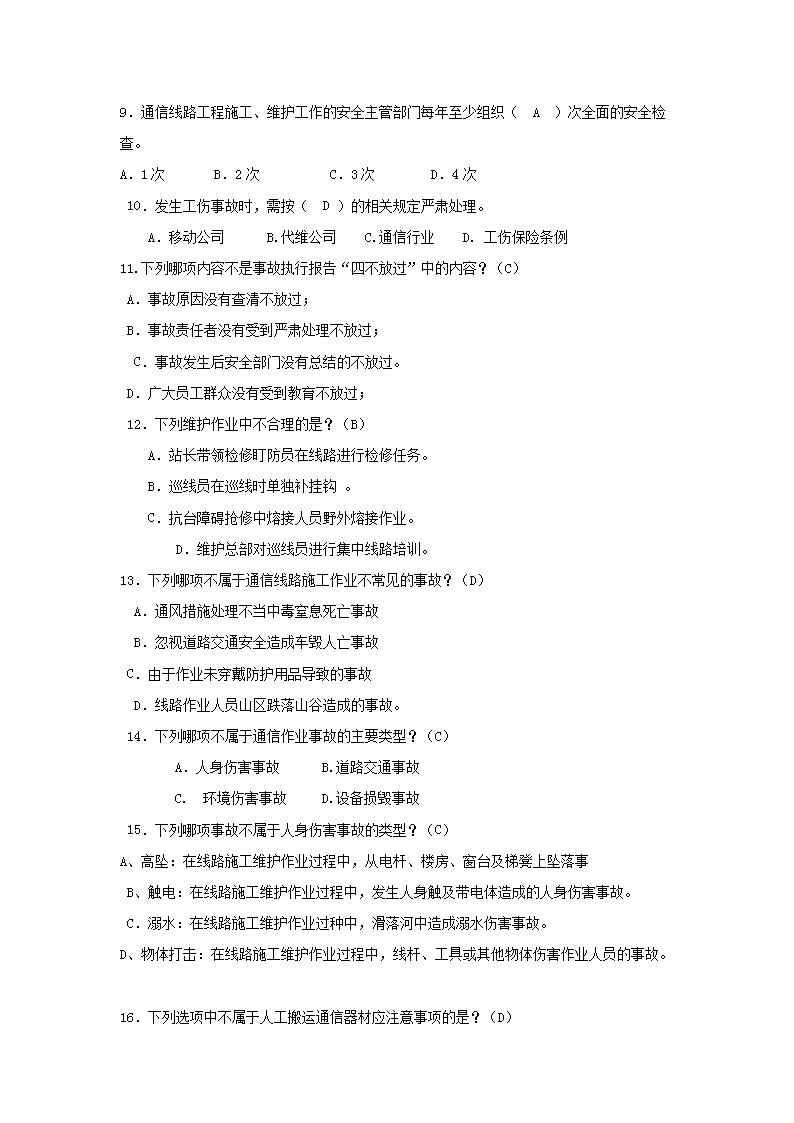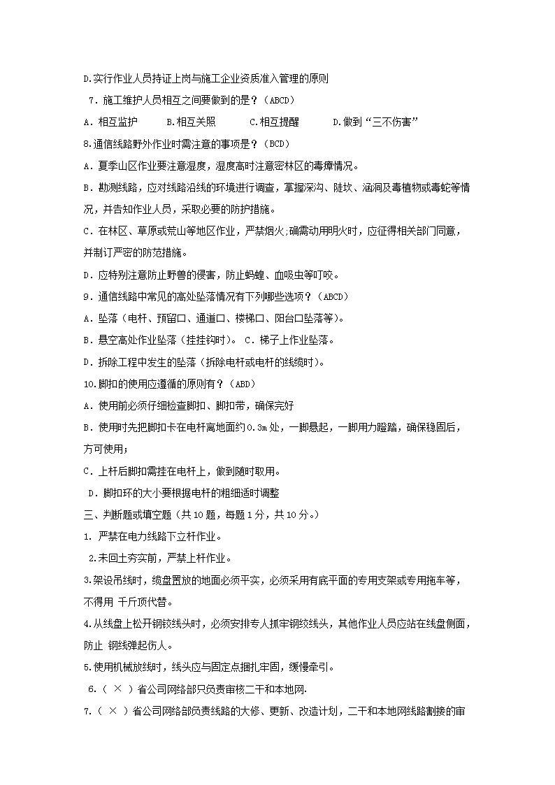 【文档名称】 传输网运行维护岗位笔试试卷及答案(Word版).doc