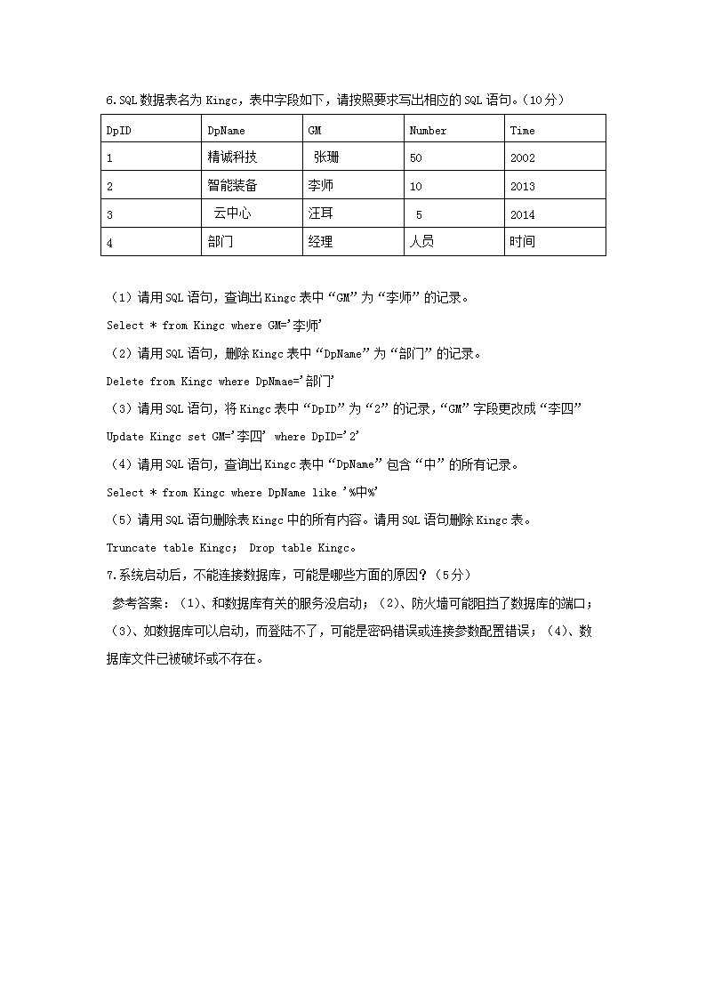 【文档预览】 无忧考网整理发布运维服务部初级服务工程师面招聘笔试题和答案(Word版),前五页预览如下: