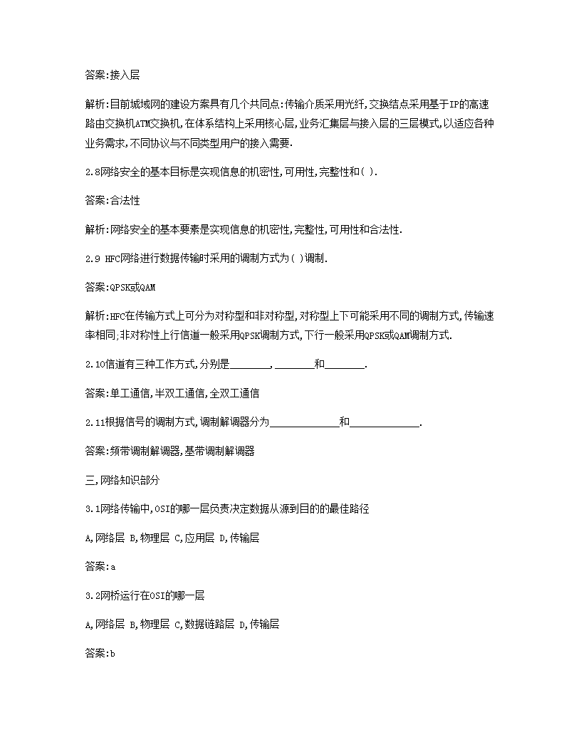 【文档名称】 电信增值业务运维工程师笔试面试题及答案(Word版).doc