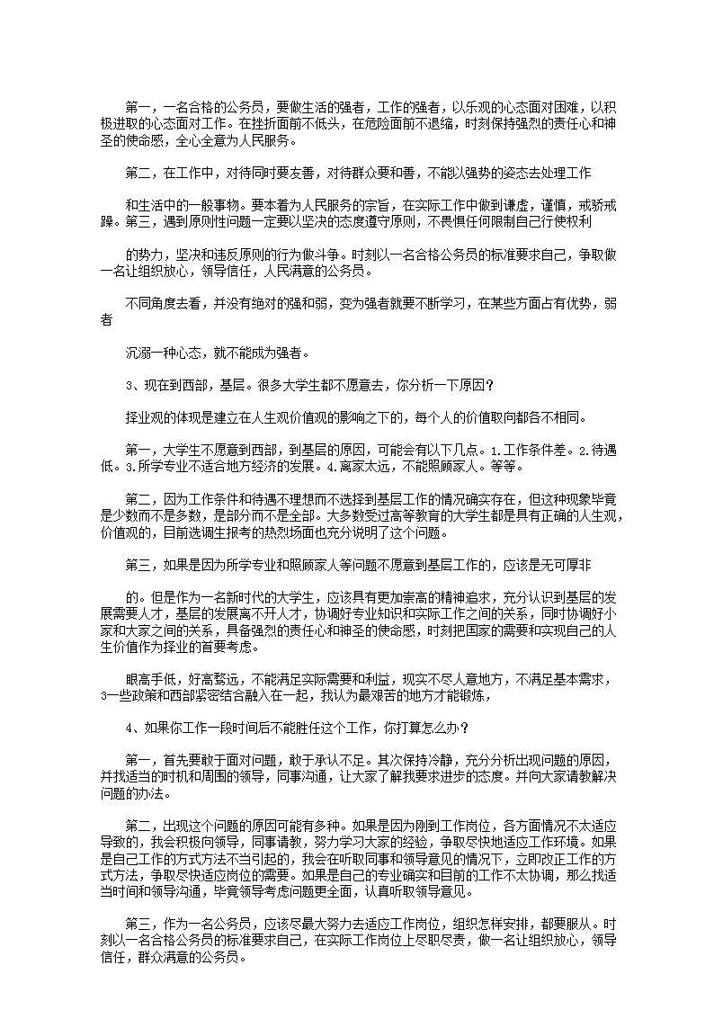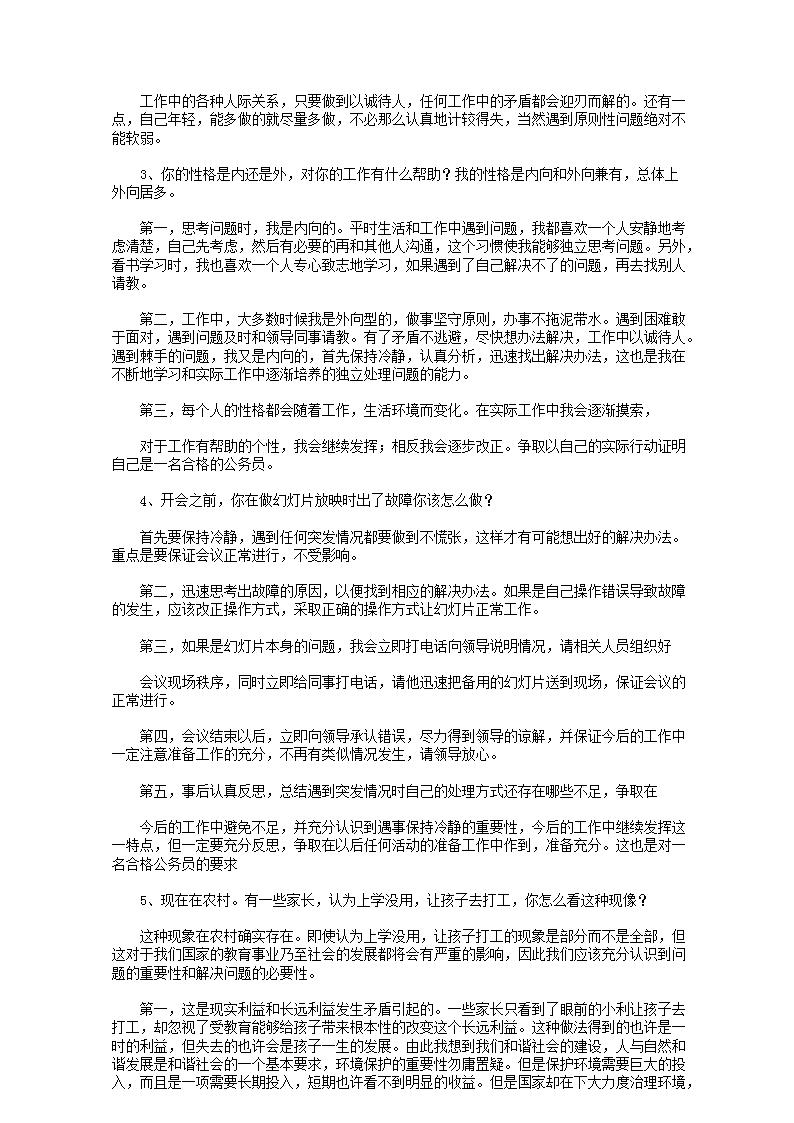 【文档预览】 无忧考网整理发布2006年河北省事业单位招聘面试真题(Word版),前五页预览如下: