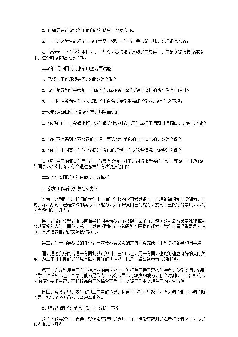 【文档名称】 2006年河北省事业单位招聘面试真题(Word版).doc