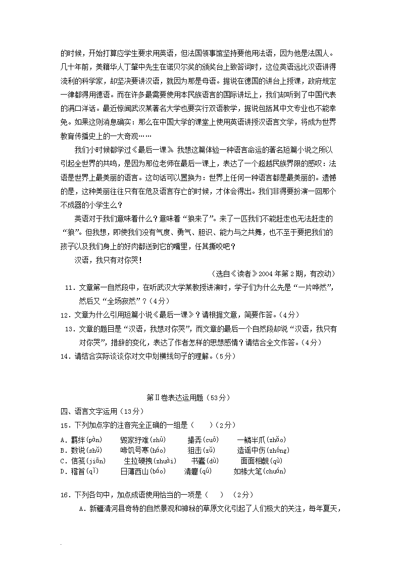 【文档名称】 2018年云南普通高中会考语文考试真题(Word版).doc