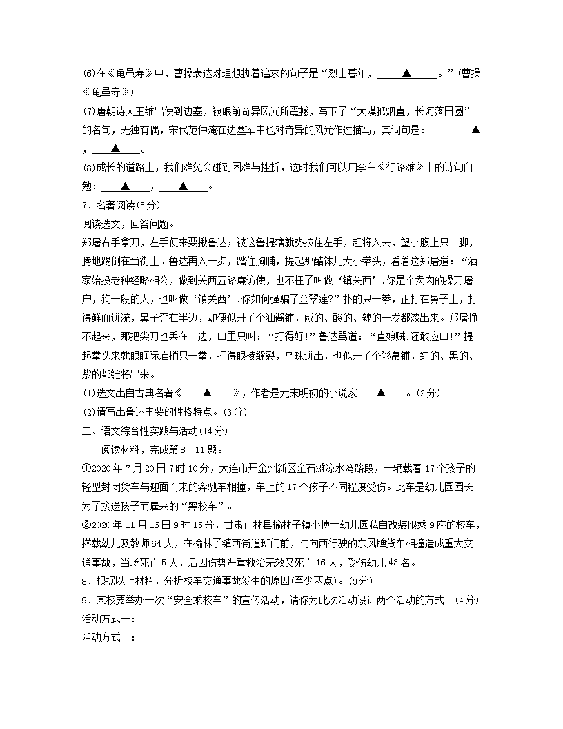 【文档名称】 2020年贵州省六盘水市中考语文试题及答案(Word版).doc