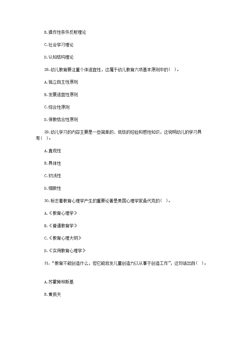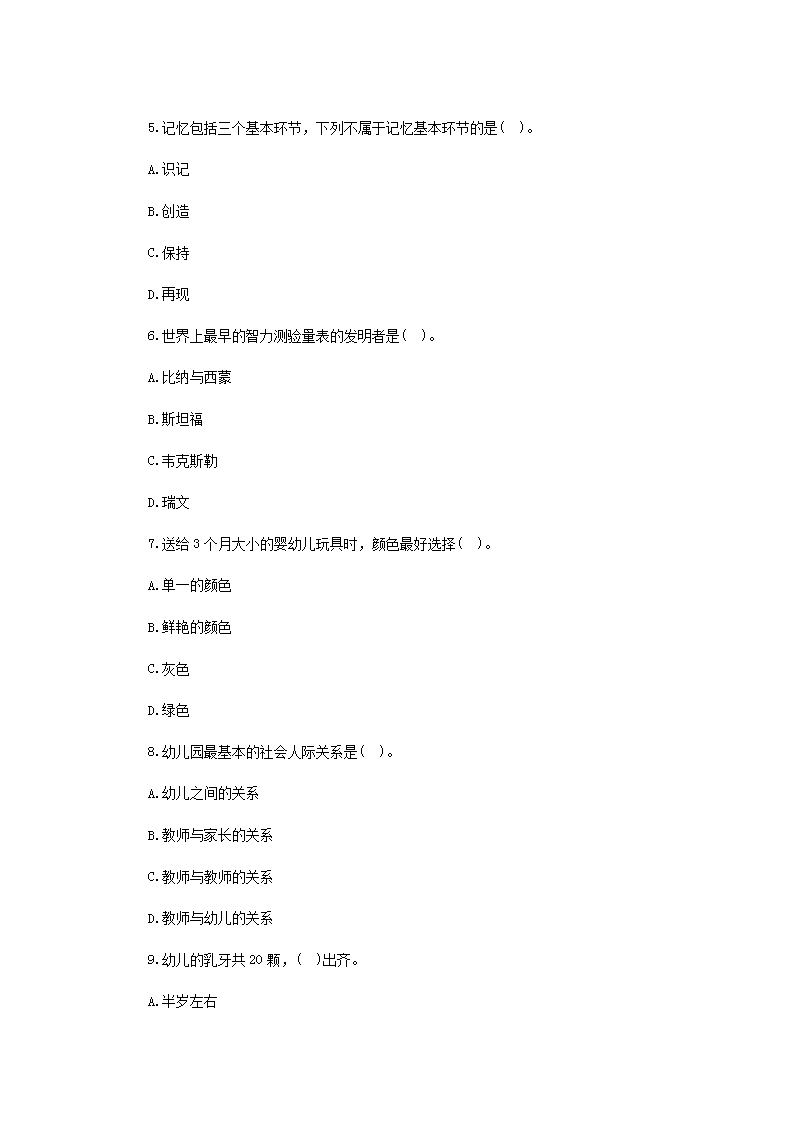 【文档预览】 无忧考网整理发布2018年山西阳泉盂县幼儿教师招聘考试真题(Word版),前五页预览如下: