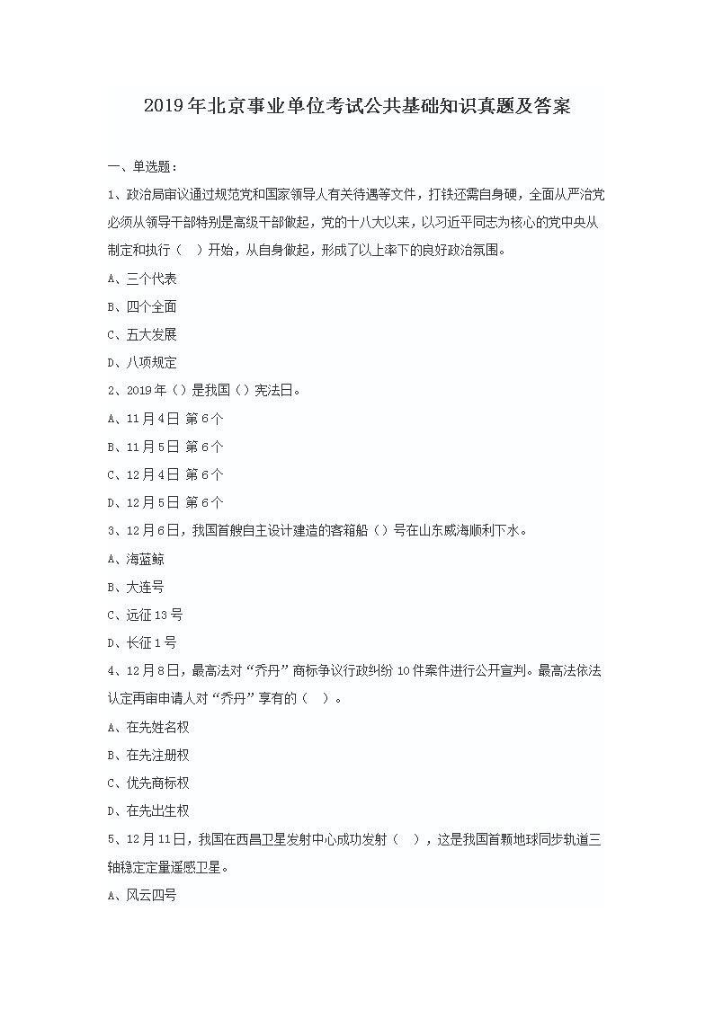 【文档名称】 2019年北京事业单位考试公共基础知识真题及答案(Word版).doc