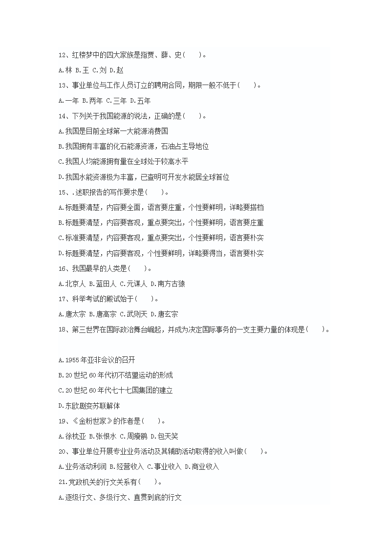 【文档预览】 无忧考网整理发布2019年北京事业单位考试公共基础知识真题及答案(Word版),前五页预览如下: