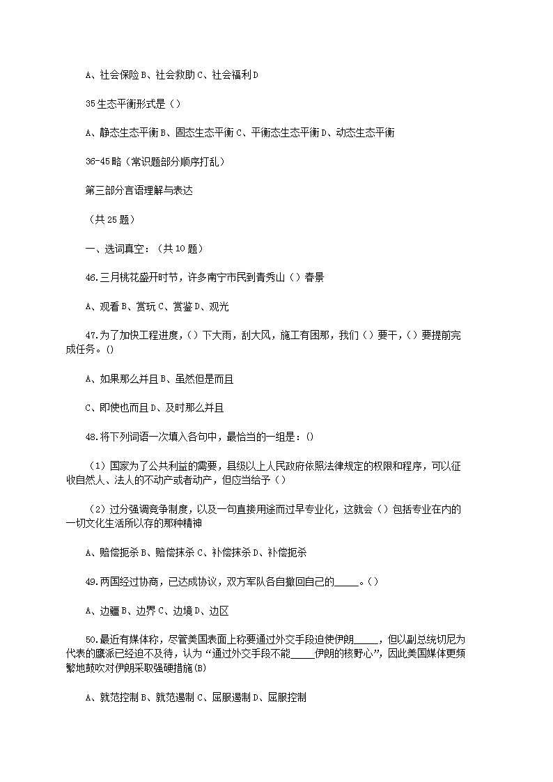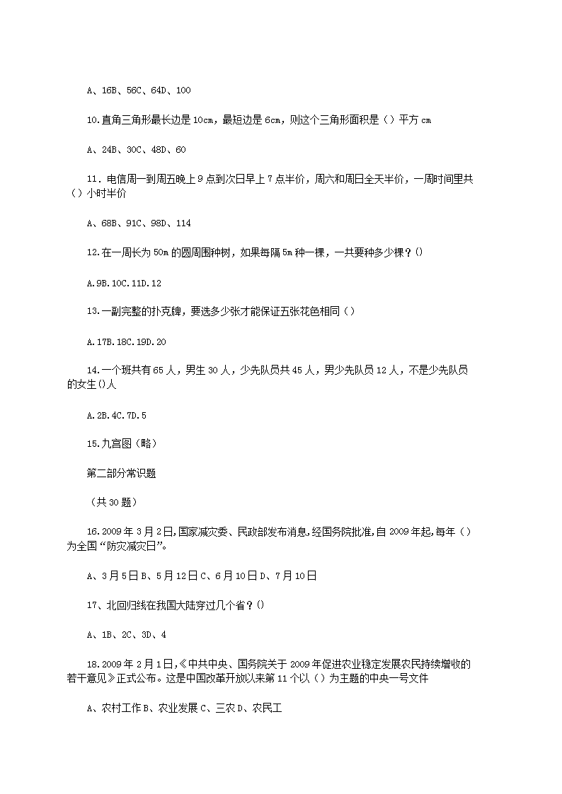 【文档名称】 2009年广西事业单位招聘行测真题(Word版).doc