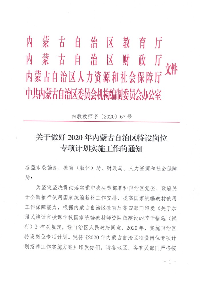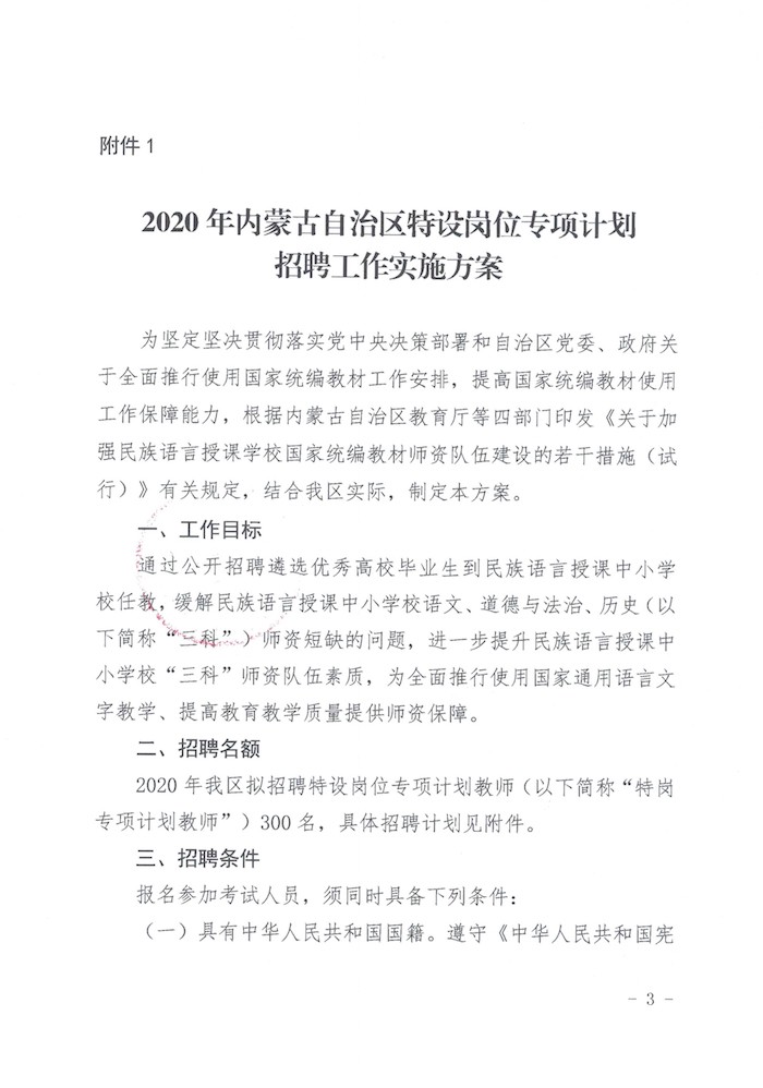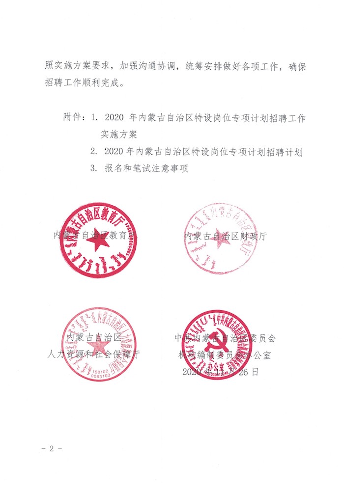 2020年内蒙古特岗专项计划实施工作通知【300人】