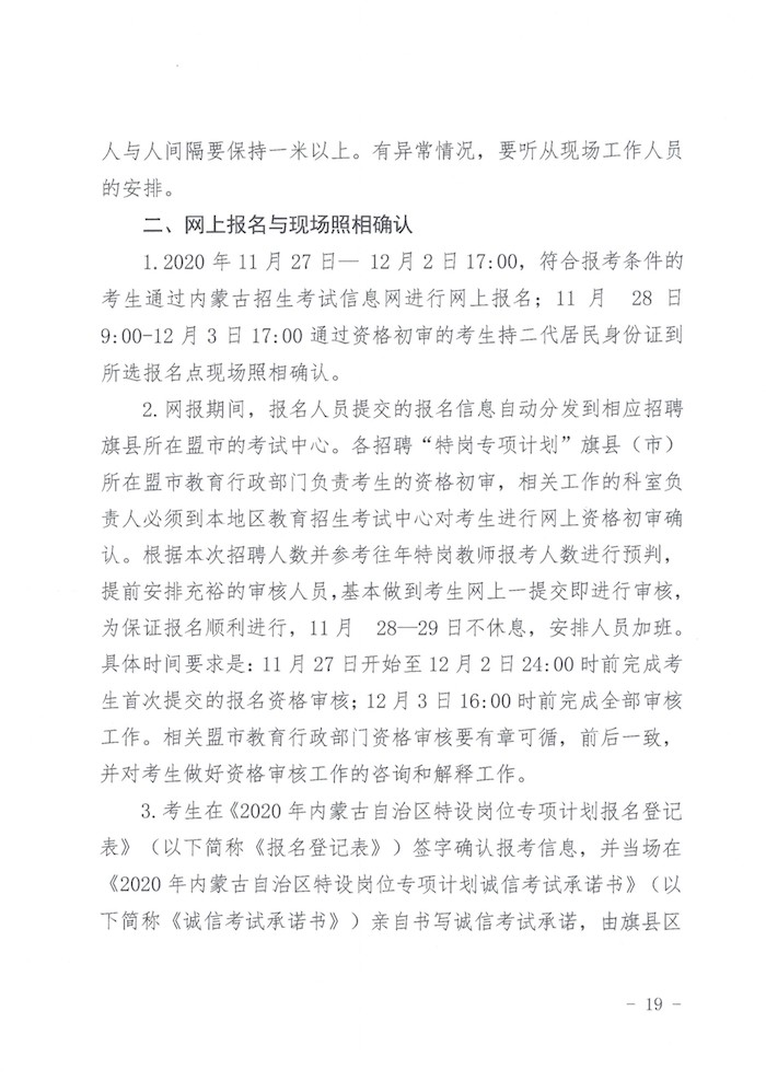 #】2020年内蒙古特岗专项计划实施工作通知已发布,报名时间:2020年11月27日-12月2日,