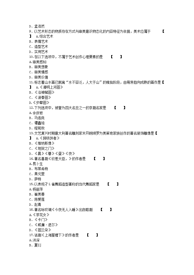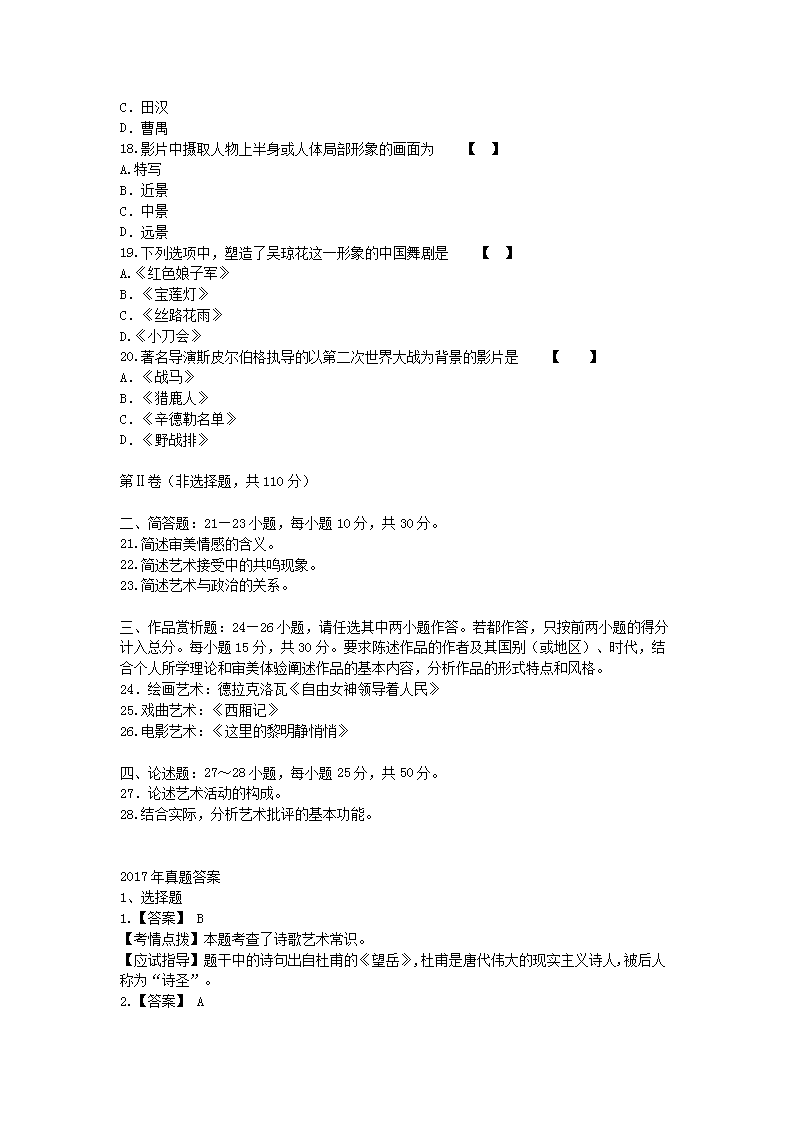 【文档名称】 2017年陕西成人高考专升本艺术概论真题及答案(Word版).doc