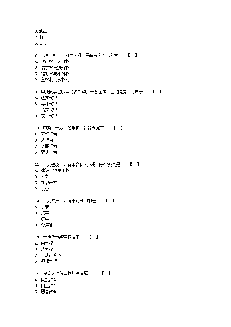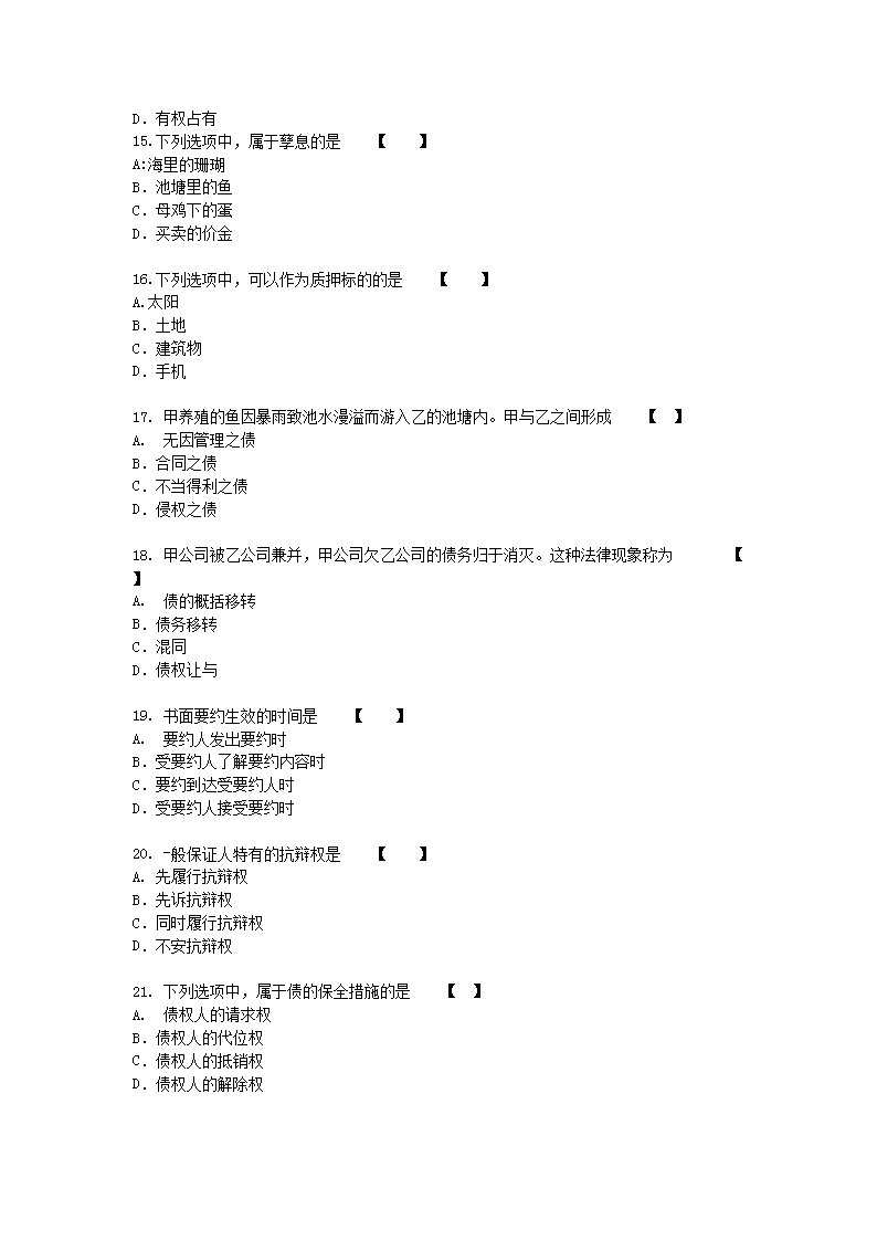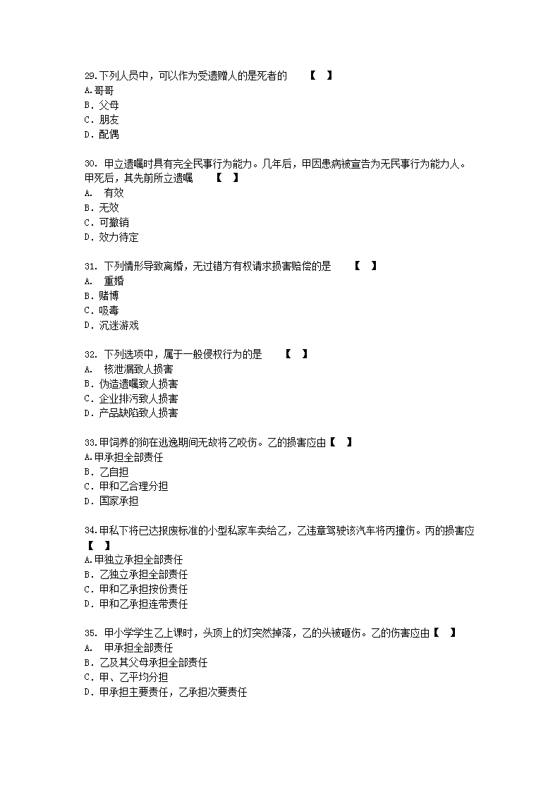 【文档名称】 2017年陕西成人高考专升本民法真题及答案(Word版).doc