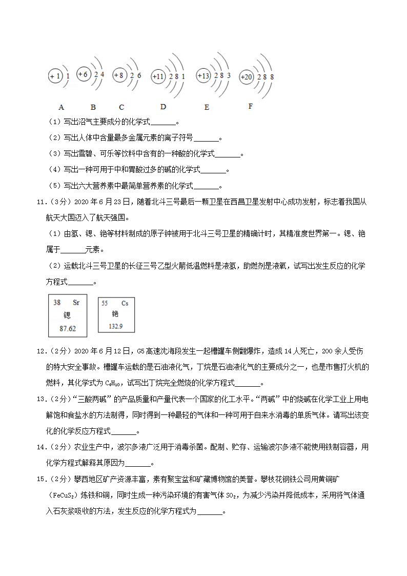 【文档名称】 2020年四川省凉山州中考化学真题及答案(Word版).doc