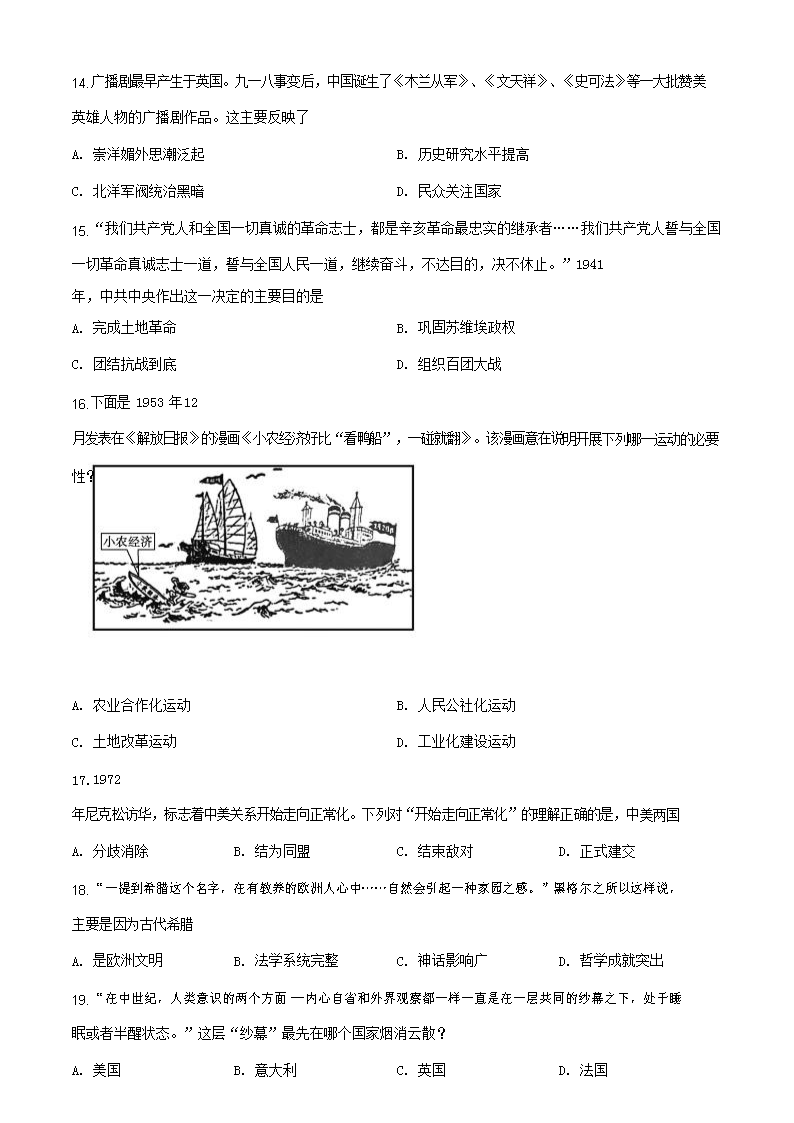 【文档预览】 无忧考网整理发布2020山东省聊城市中考历史真题及答案(Word版),前五页预览如下: