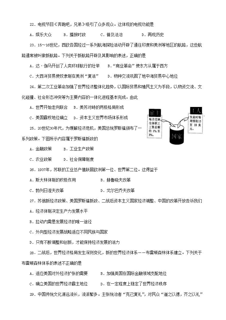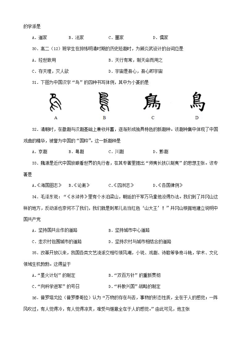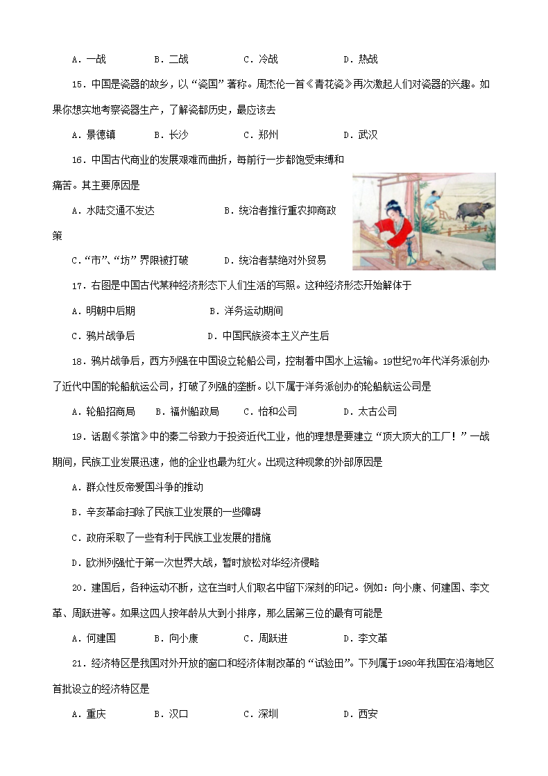 【文档名称】 2015年贵州普通高中会考历史真题及答案(Word版).doc