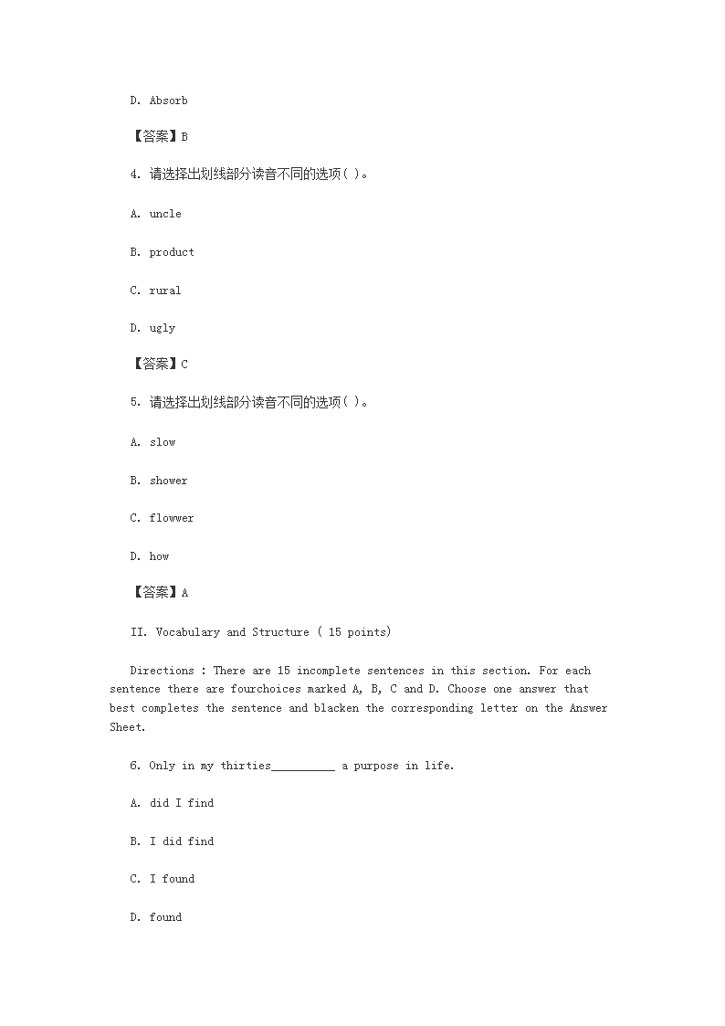 【文档名称】 2015年山西成人高考高起点英语真题及答案(Word版).doc