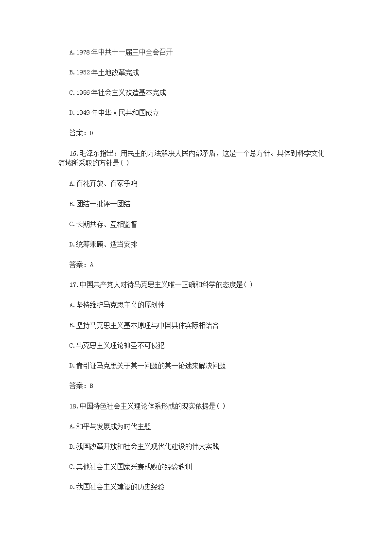 【文档名称】 2016年山西成人高考专升本政治真题及答案(Word版).doc