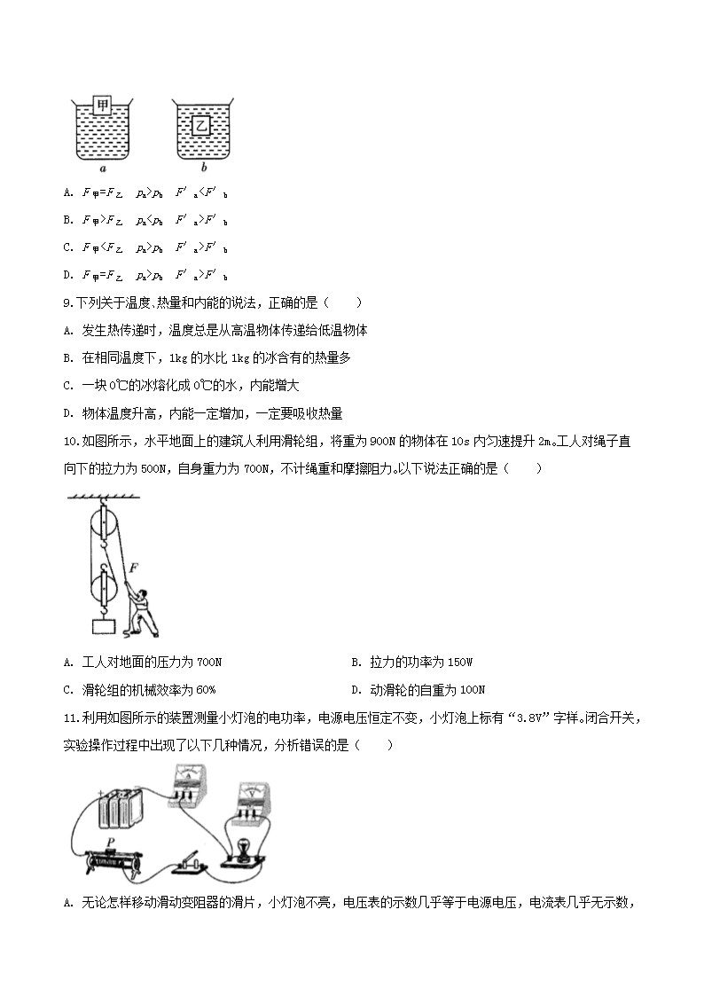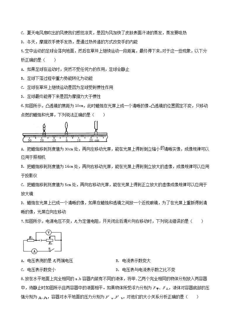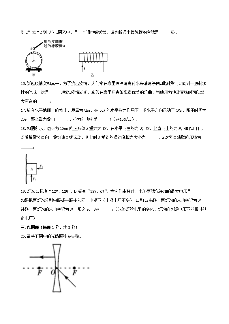 【文档名称】 2020年四川省广安市中考物理真题及答案(Word版).doc
