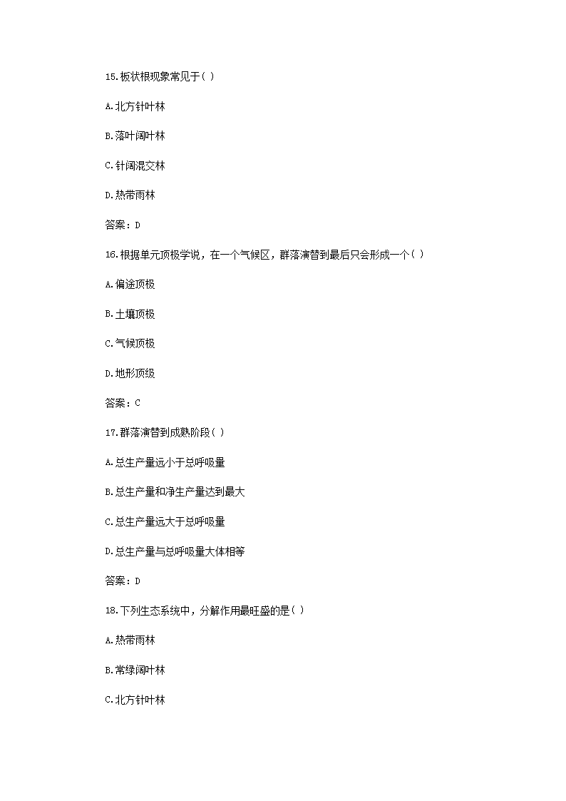 【文档名称】 2017年山西成人高考专升本生态学基础真题及答案(Word版).doc