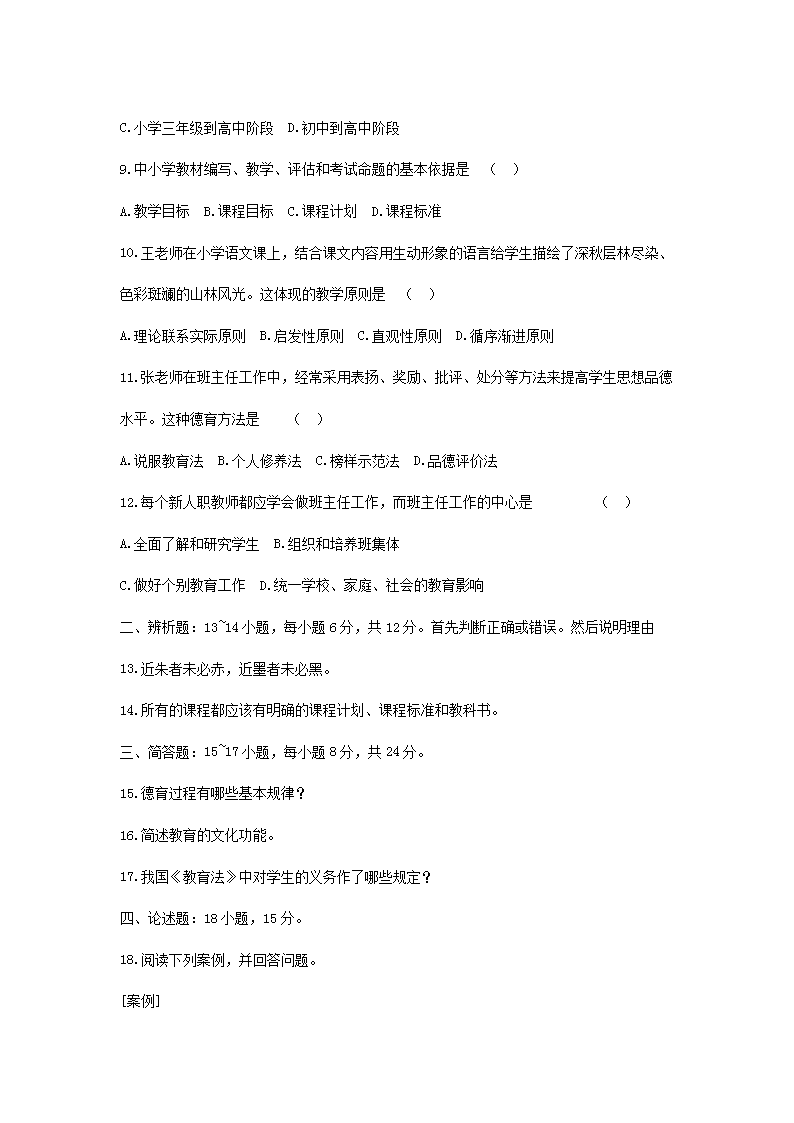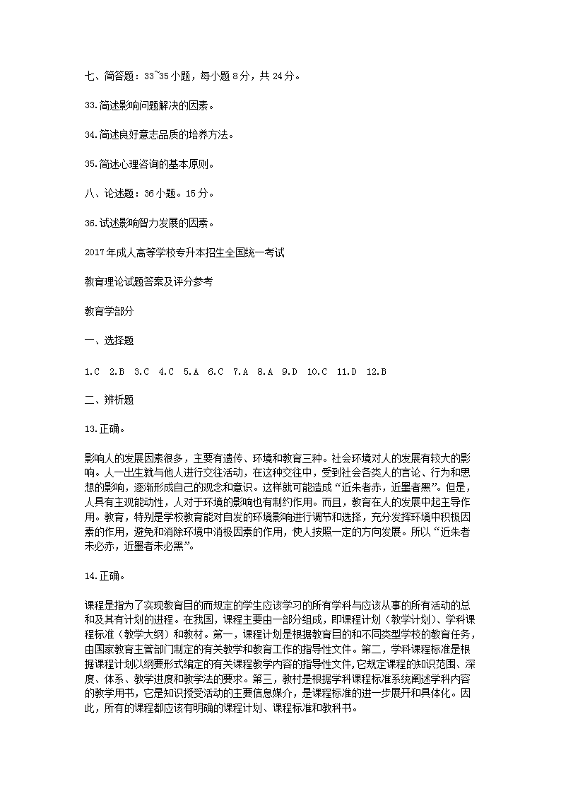 【文档名称】 2017年山西成人高考专升本教育理论真题及答案(Word版).doc